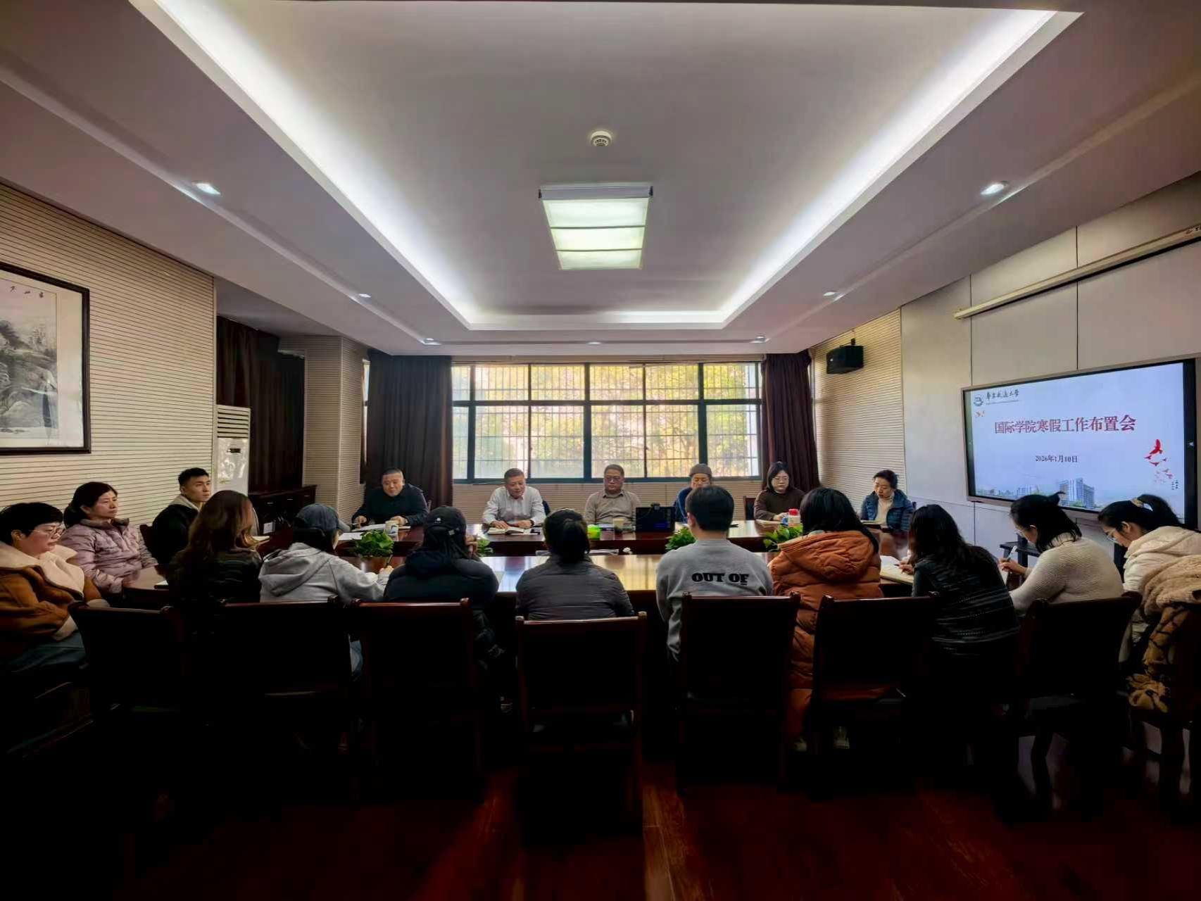 1月10日下午,国际学院(国交处、港澳台办)召开寒假工作布置会。院长朱王海主持会议,学院领导班子及全体教职工参会。